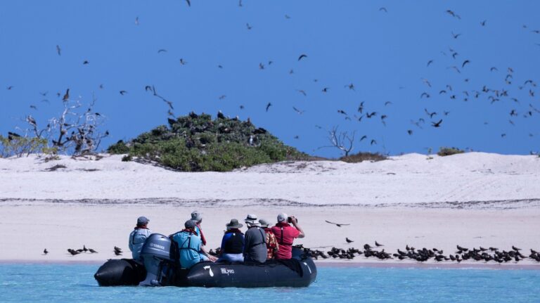 Today we explore the incredible wildlife reserve and birding paradise of the Lacepede Islands. Designated a nature reserve in 1970 and rat free since 1986, this collection of four unassuming islands off the north-west coast of Western Australia are recognised as an Important Bird Area by BirdLife International with what is thought to be the largest breeding colony of Brown Boobies, up to 18,000 pairs, in the world. These small, low-lying spits of coarse sand and coral rubble atop a platform reef are also the state’s most important breeding grounds for Green Turtles. Other wildlife which call these remarkable islands home include Roseate Terns, Masked Boobies, Australian Pelicans, Bridled, Crested and Lesser Crested Terns, Eastern Reef Egrets, Silver Gulls, Common Noddies, Lesser Frigatebirds, and Pied and Sooty Oystercatchers, while Grey-tailed Tattlers, Whimbrels, Bar-Tailed Godwits, Ruddy Turnstones and Great Knots are among the visiting vagrant species. While landings are not permitted, we plan to explore the islands’ incredible shores by Zodiac and, if lucky, we may also see some Humpback Whales which frequent this coastline during their northern migration in winter and early spring.