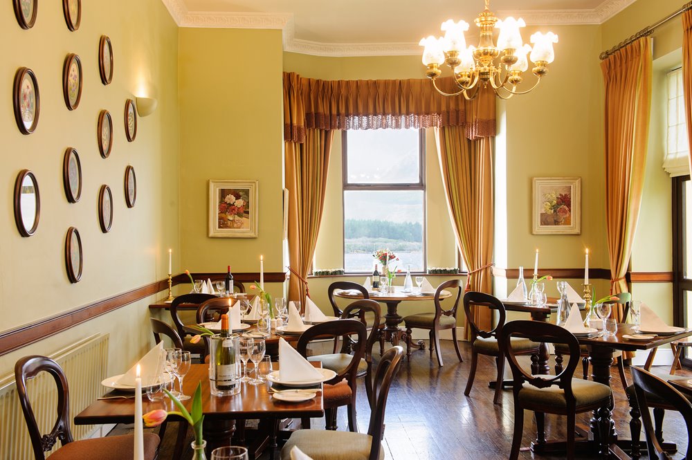 This is a charming country retreat with 13 tastefully appointed rooms, five of them furnished to deluxe standard. Originally a fishing lodge of the Berridge family, Lough Inagh Lodge echoes that tradition in superb menus based on Connemara lamb, fish and seafood, along with other local produce.