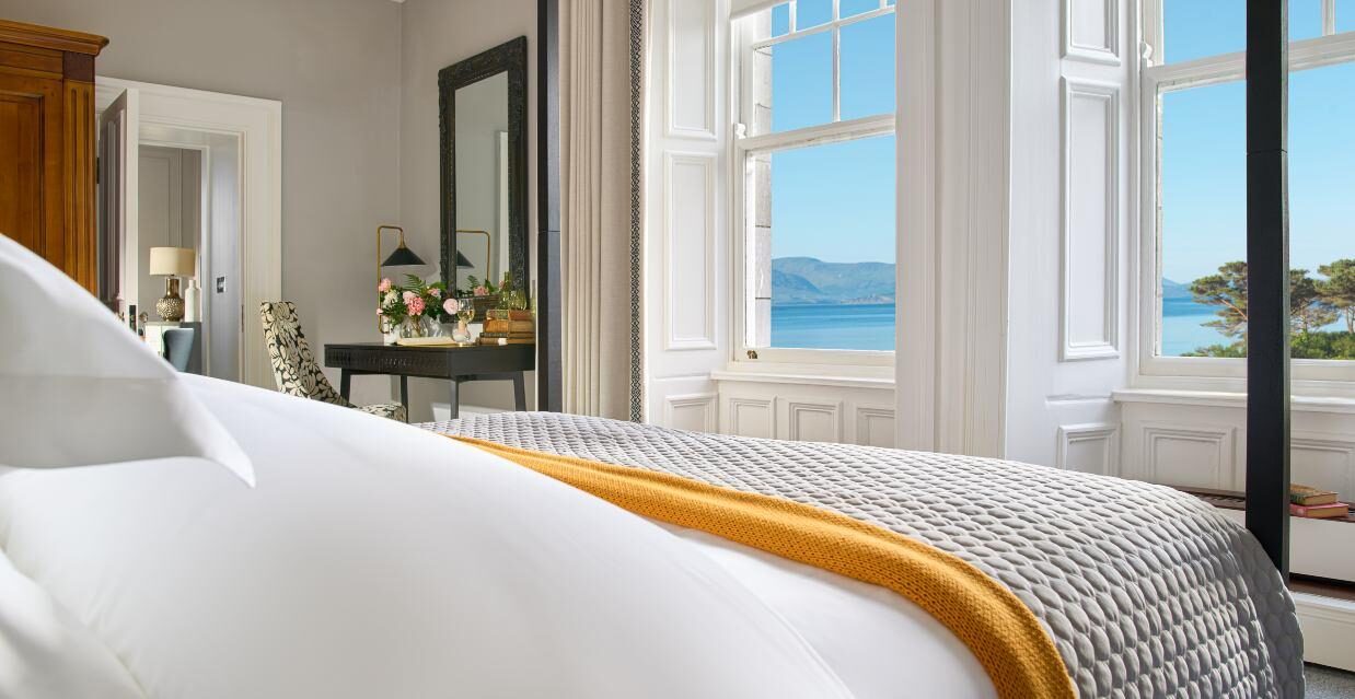 Parknasilla Resort & Spa is full of these moments. It’s stunning location; the seemingly boundless grounds with tracks and trails that wind tantalisingly on and on, the ocean; wild yet comforting, that laps and crashes over the rocky outcrops and rattling pebbles alike, the food; tasty, generous and satisfying, the activities; jumping off piers into the sea, drifting aimlessly in a kayak and unwinding in the lounge; eyes moving from the page of a book to look at the raw Atlantic coastline through the window, the mind unfurling in reflection, the rooms; unpretentious, cosy, quietly luxurious and time to revive your senses in the ocean side spa.