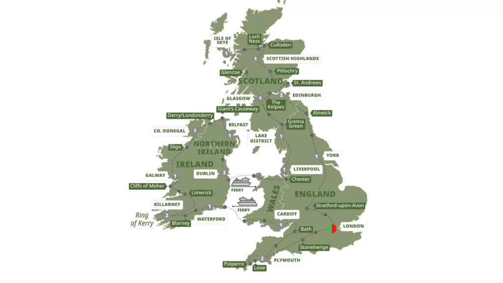 20-day UK and Ireland Tour of England, Wales, Ireland and Scotland
